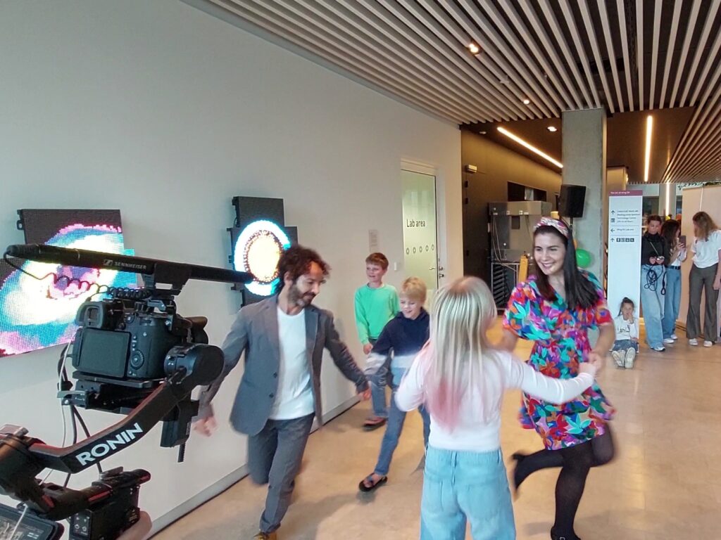 The talk was based on her TEDx talk “Dancing out of the box: A TV show’s lesson on stereotypes”, adapted for a younger audience, and together with Roni Bulent Ozel, she added a short swing dance show within the performance, which ended with the children joining the dancing! The audience enjoyed the show so much that the duo was asked to perform it again an hour later. The full video of the performance is available here.