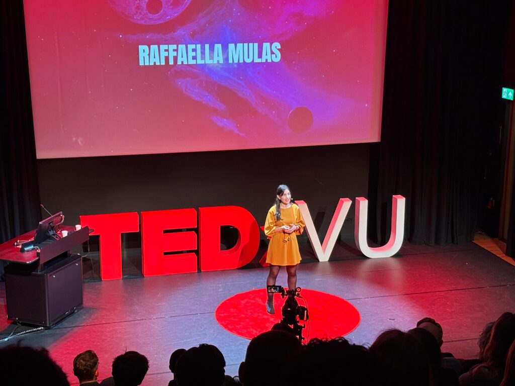 The event took place at VU Amsterdam, thanks to the initiative of the Department of Physics and Astronomy. Many other departments joined, contributing their own scientific activities as part of their stands, and Raffaella’s performance was the only live show.
